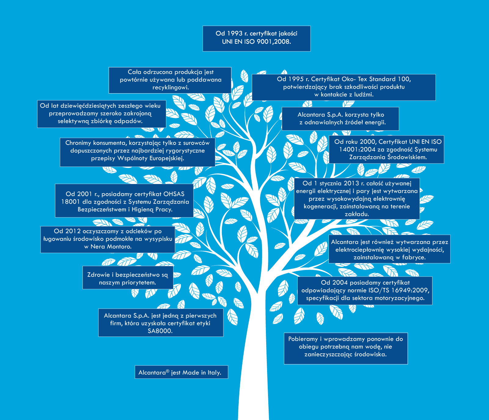 W swojej działalności Alcantara kieruje się takimi wartościami jak: ochrona środowiska, zdrowie, bezpieczeństwo i prawa pracownicze.